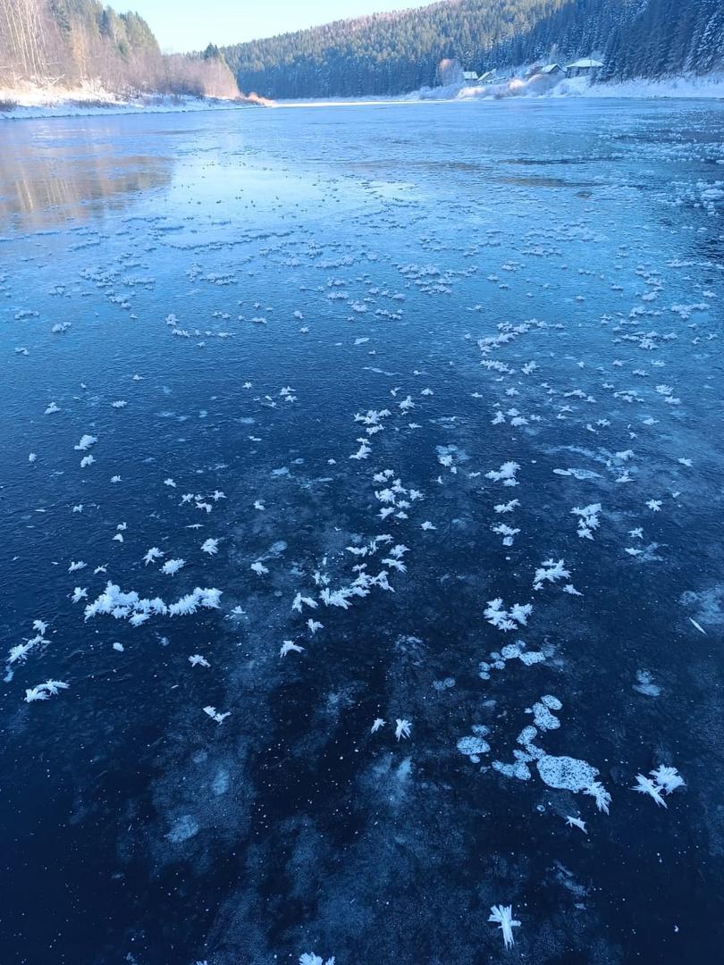 Красивые снимки ледяных цветов на Чусовой выложили инспекторы природного парка «Пермский»