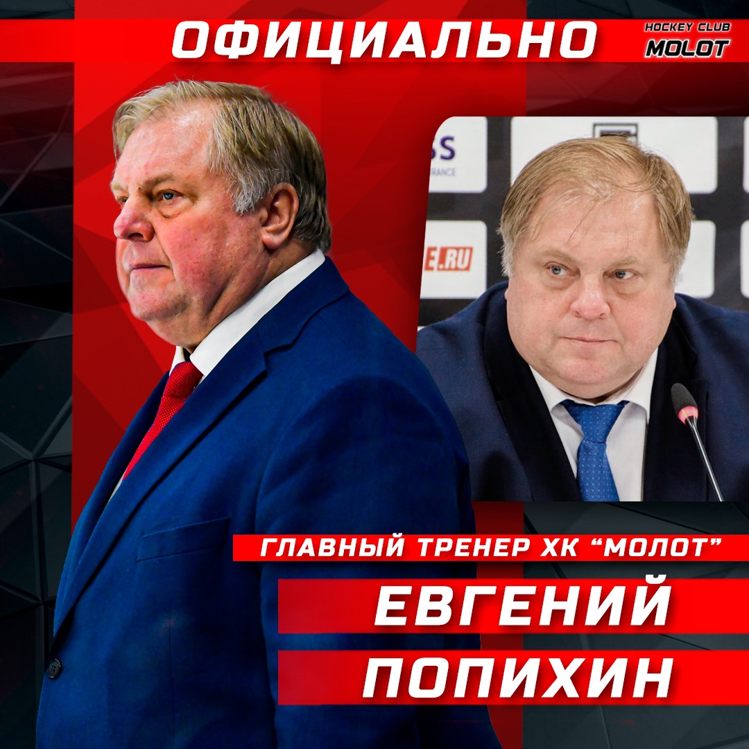 На пост главного тренера пермского ХК «Молот» назначен Евгений Попихин. Об этом сообщается в социальных сетях хоккейного клуба.