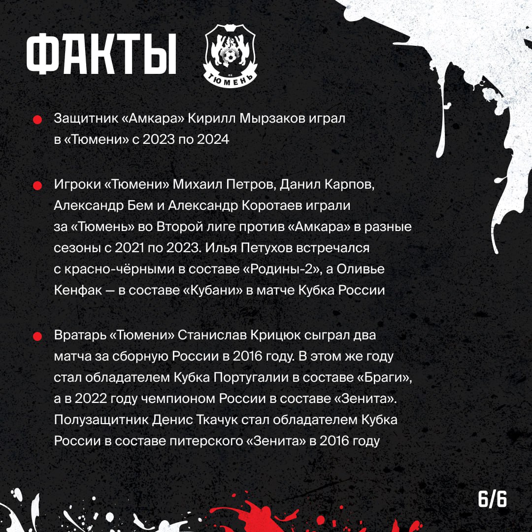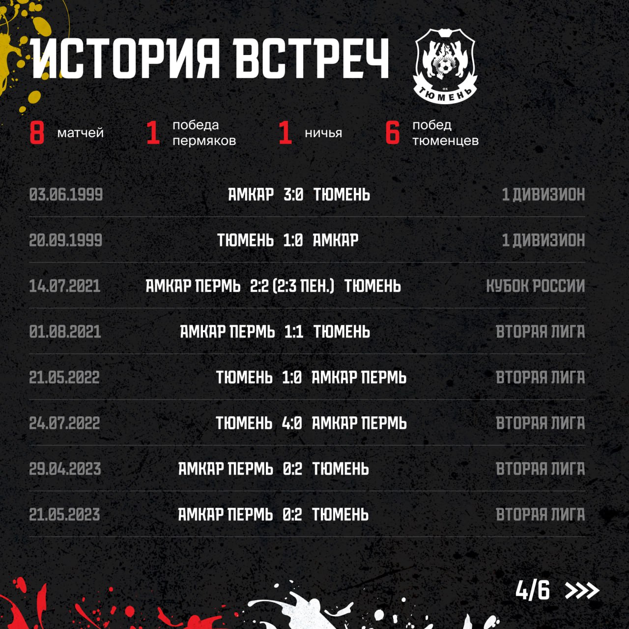 «Тюмень» и «Амкар», напомним, «старые знакомые», прежде встречались шесть раз. Два раза они сыграли вничью, а в остальных матчах «Тюмень» выиграла.