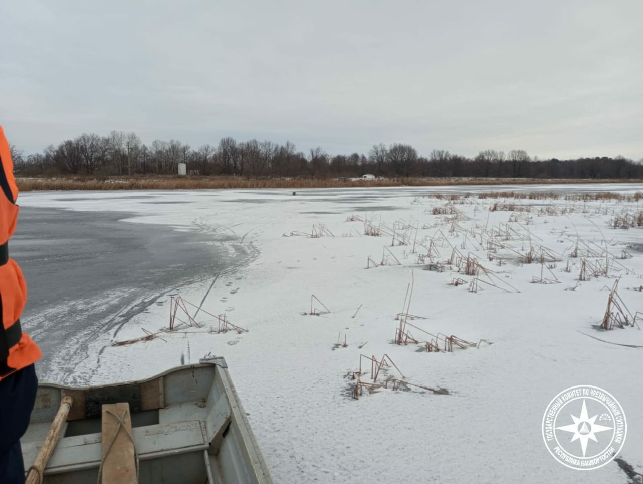 Спасатели извлекли тело погибшего из воды. Толщина льда на озере в момент происшествия составляла не более 5 см.