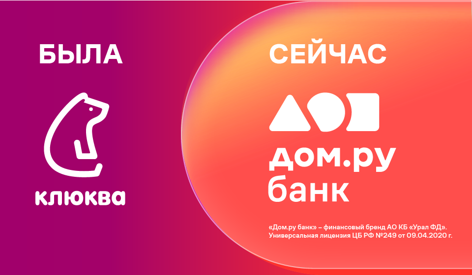 В ноябре стартовала масштабная кампания по смене позиционирования и фирменного стиля крупнейшего пермского банка «Урал ФД» (розничный бренд «Клюква»). Перемены затронут два направления деятельности банка — розничное и корпоративное. Физические, юридические лица и индивидуальные предприниматели теперь будут обслуживаться под новым финансовым брендом «Дом.ру». При этом официальное наименование банка не изменится.