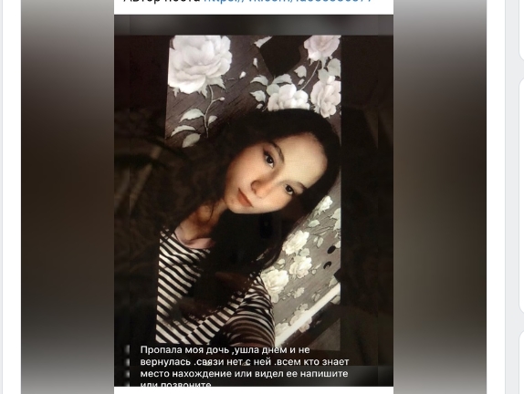 Просят позвонить по телефону 8-952-519-60-10 всех, кто знает о местонахождении Анастасии.