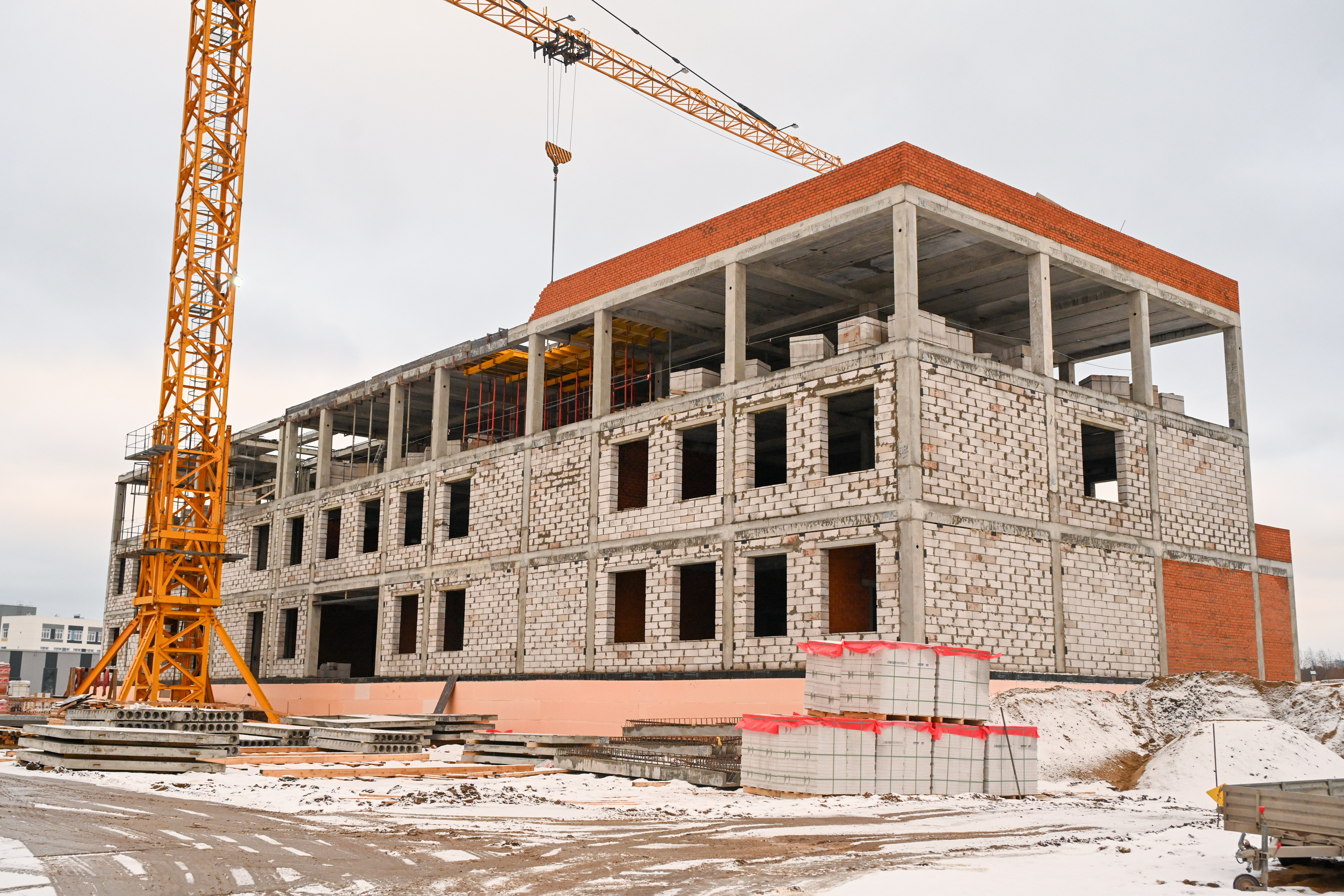 Сейчас ведётся кладка внутренних и наружных стен здания. К зданию подводят коммунальные сети.