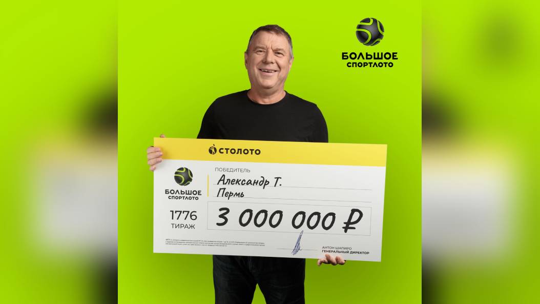Житель Перми Александр Т. стал победителем лотереи «Большое Спортлото». Размер его выигрыша составил 3 млн руб. Об этом сообщает «Рифей-Пермь» со ссылкой на пресс-службу компании «Столото».