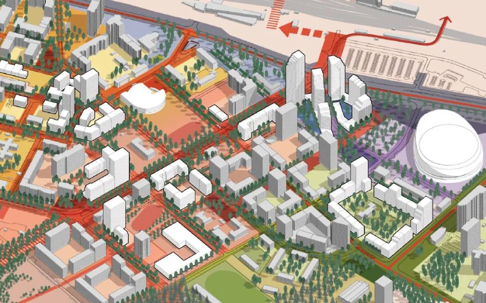 На востоке, рядом с Домом культуры железнодорожников и Черняевским лесом, появится ансамбль «ДКЖ ПАРК» — крупный квартал с фоновыми фасадами, что будет гармонировать с активной окружающей застройкой.
