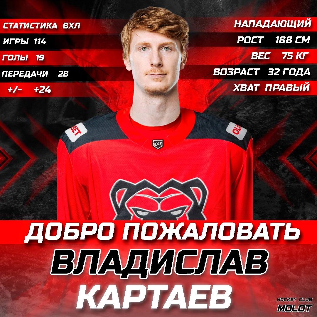 ХК «Молот» (Пермь) подписал контракт с нападающим Владиславом Картаевым, об этом сообщили в пресс-службе клуба.