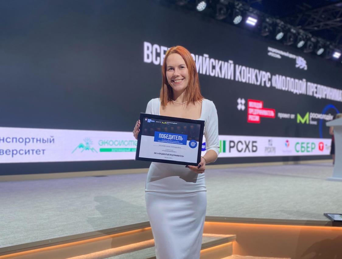 Пермячке Анне Носковой вручили награду на Всероссийском фестивале молодёжного предпринимательства «Бизнес молодых», организованном треком Росмолодежь.Бизнес на площадке Национального центра «Россия».