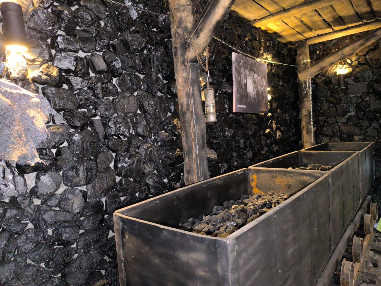 В экспозиции представлены архивные фотографии добычных работ, портреты и гравюры, подлинная спецодежда шахтёров и исторические горные инструменты. Есть и интерактивные элементы. Воссоздан интерьер угольной и калийной шахт.