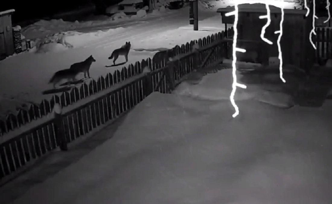 Жители Ныроба в Пермском крае обеспокоены возросшей активностью волков. В редакцию «КП-Пермь» поступило видео, предположительно снятое ночью 12 декабря, на котором видно, как группа из шести хищников выходит из леса и направляется к забору частного дома, где лает собака. По словам хозяина, услышав лай, он вышел на крыльцо и громкими криками прогнал волков. Местные утверждают, что без его вмешательства собаку могли бы растерзать.