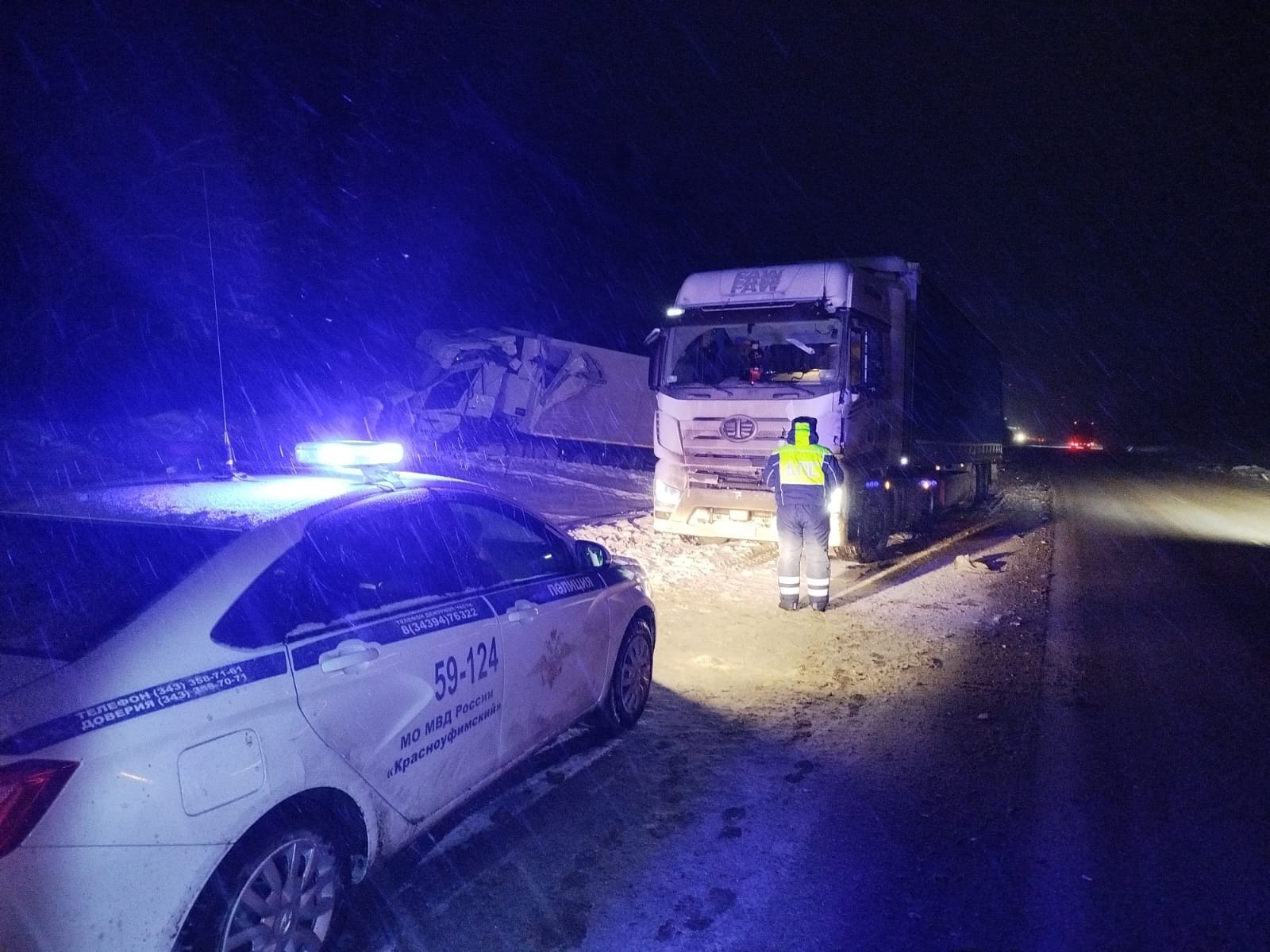 Рано утром 14 декабря, приблизительно в 4:25, на 172 км дороги Пермь—Екатеринбург произошло столкновение двух грузовиков, сообщили сотрудники Госавтоинспекции Свердловской области.