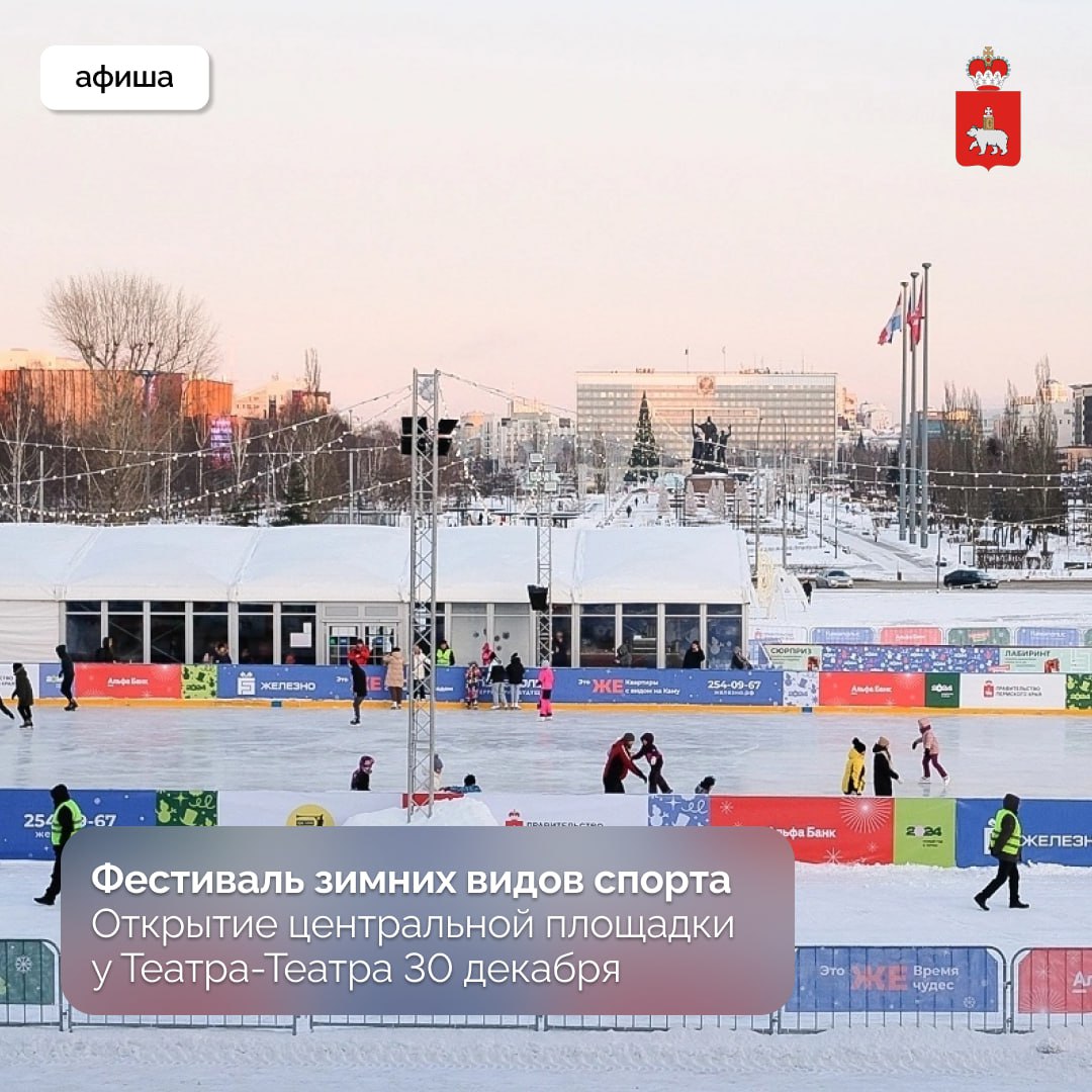 Каток у Театра-Театра станет центральной площадкой фестиваля зимних видов спорта. Для горожан будет доступно посещение мастер-классов по фигурному катанию, хоккею, конькобежному спорту, кёрлингу, турниры и спортивные праздники. Специальная программа запланирована на весь период новогодних каникул. Полный перечень мероприятий опубликован на портале Умный спорт РФ.
