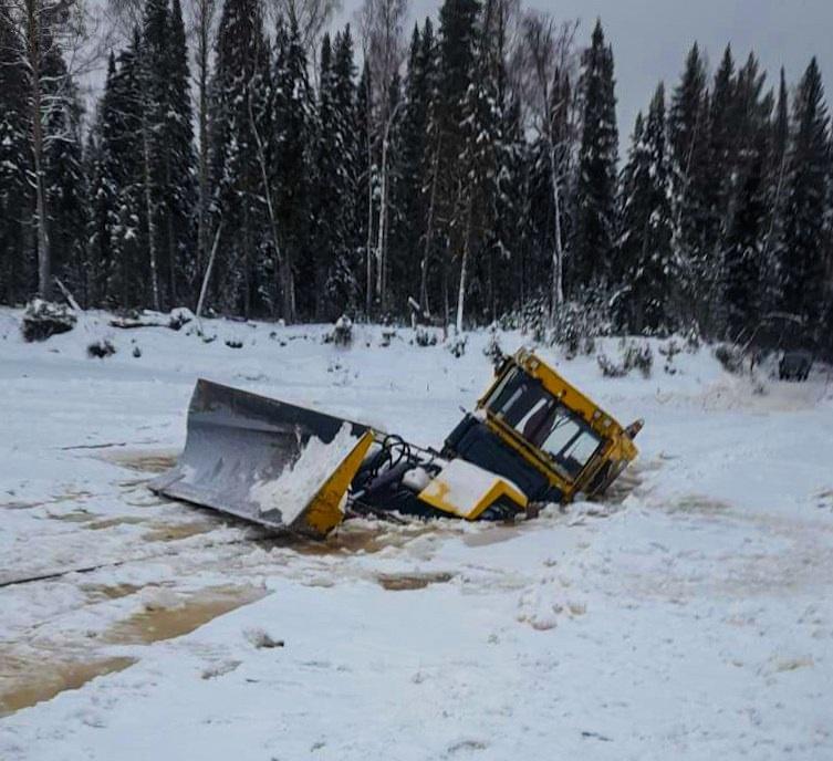 В Пермском крае на ледовой переправе чуть не утонул трактор