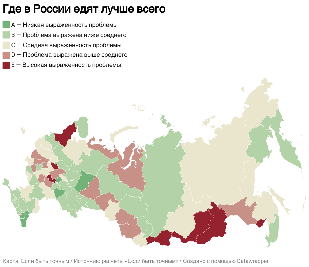 Эксперты проанализировали, достаточно ли в рационе жителей каждого региона овощей, фруктов, молока и мяса и не слишком ли много соли, жира и сахара. Результаты анализа показали, что питание в разных частях страны сильно отличается, однако в целом рацион большинства регионов далёк от идеала и содержит большое количество сахара, соли и жира.