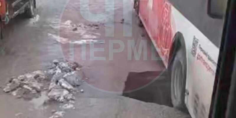 В Перми автобус провалился в яму в асфальте