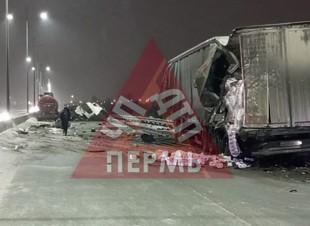 По данным ГУ МВД России по Пермскому краю, ДТП случилось около 20:25, когда на Красавинскому мосту со стороны Краснокамска в направлении Екатеринбурга двигался автомобиль Scania. На 1095 км трассы водитель 1970 г.р. въехал в стоящий КамАЗ.