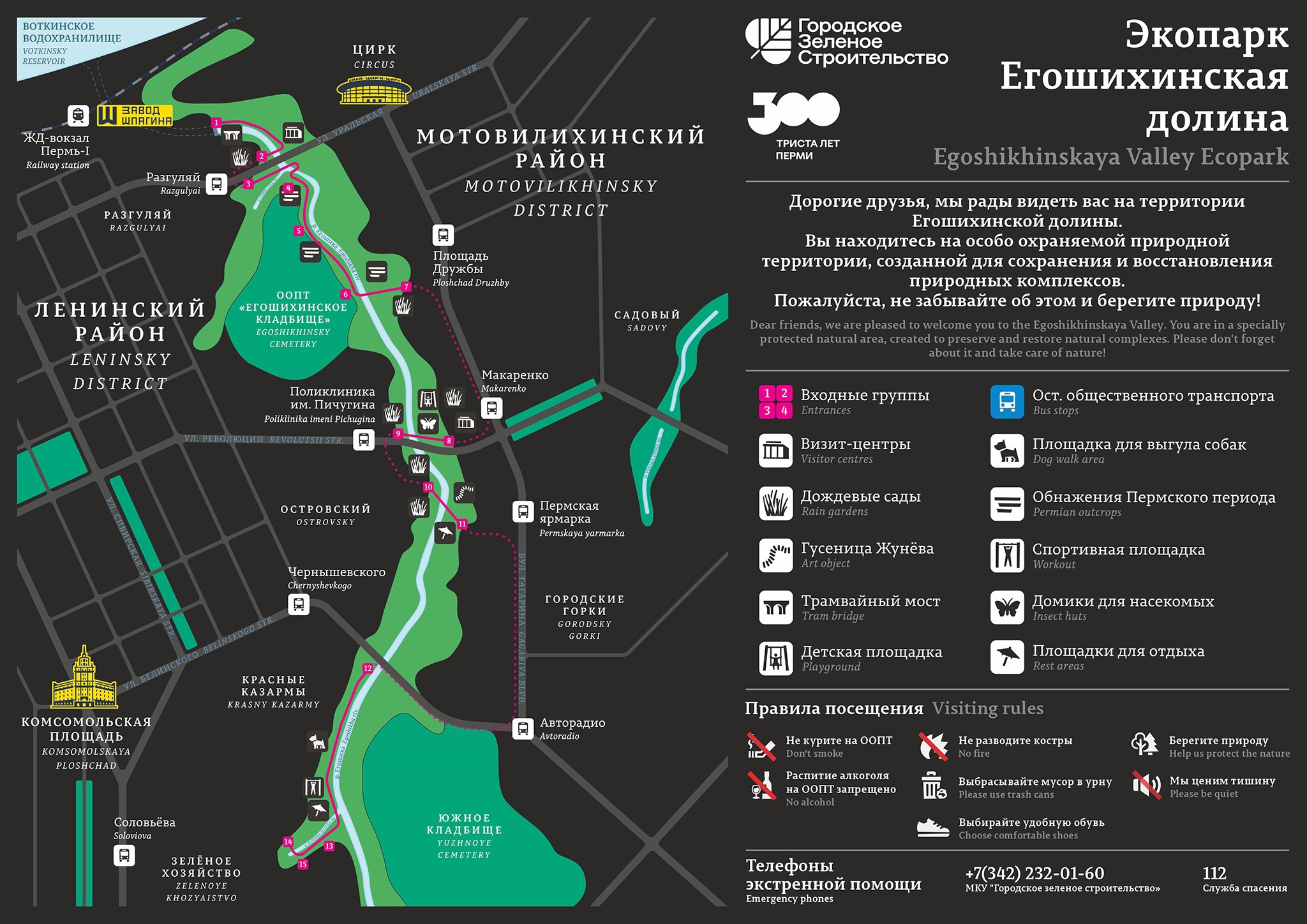 В Перми муниципальное предприятие «Горзеленстрой» предоставило схему расположения входов на новые экологические тропы, проложенные в долине Егошихи.