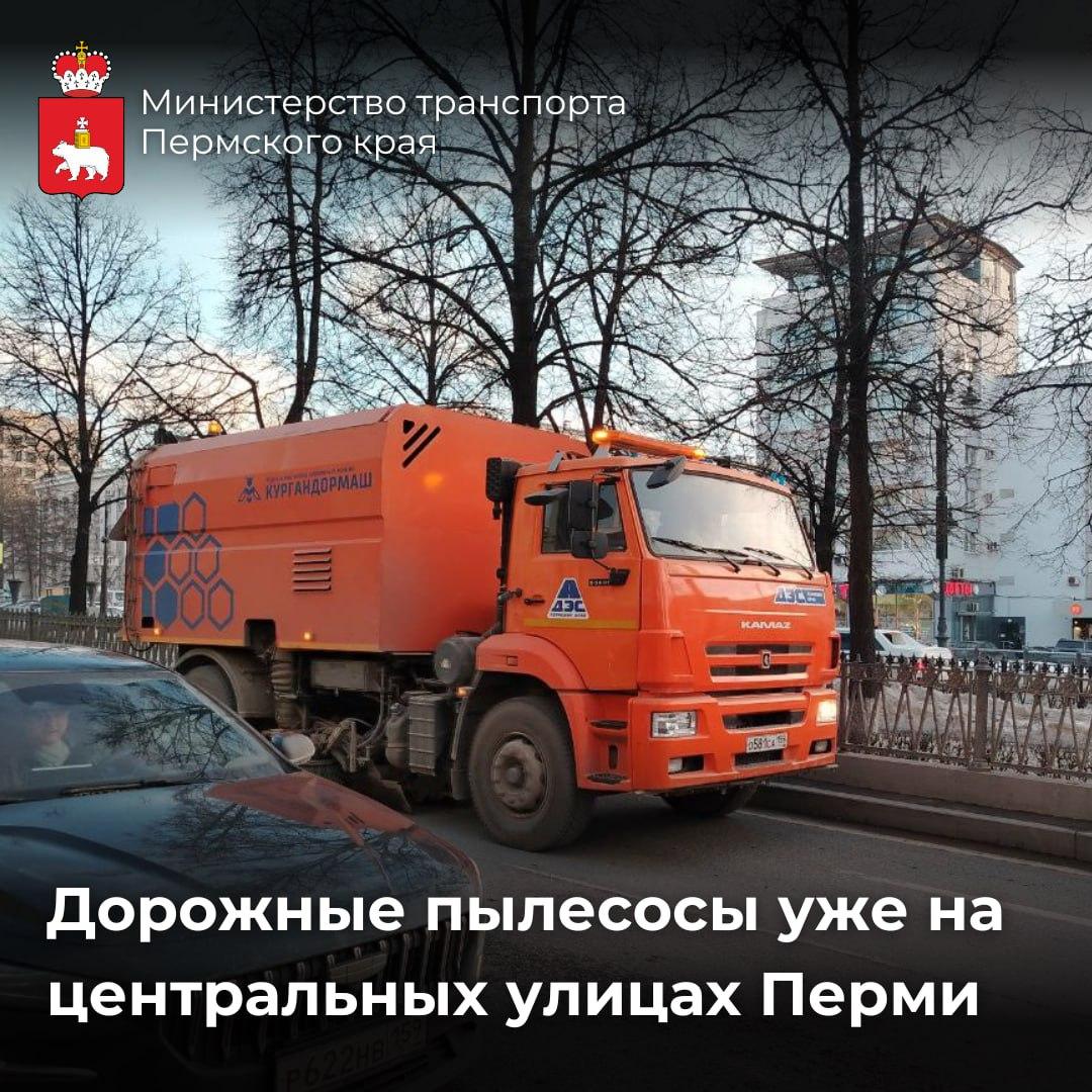 В центре Перми приступили к уборке улиц с использованием дорожных пылесосов ДЭС, сообщает ВЕТТА со ссылкой на Министерство транспорта Пермского края.