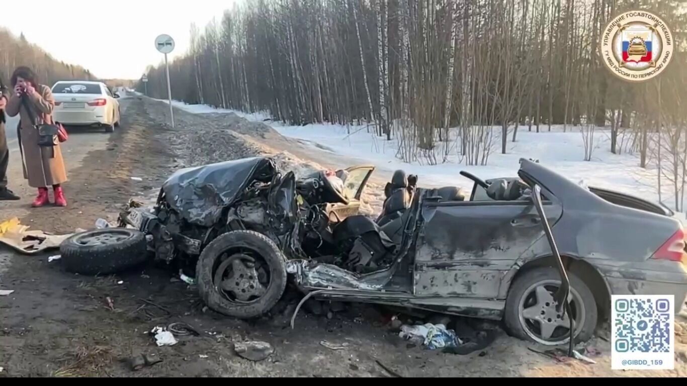 Около 16:12 по трассе Пермь — Березники двигался автомобиль «Лада Приора», которым управлял мужчина 1996 г.р. По предварительным данным, на 101-м км дороги водитель «Лады», предположительно, совершил выезд на полосу встречного движения, что привело к столкновению с автомобилем «Мерседес» под управлением мужчины 1972 г.р.