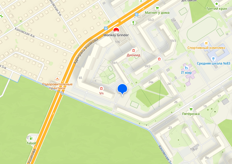 В этом месте находится выезд на ул. 5-ю Каховскую. Дорогу весной топит ежегодно. Автомобили с трудом проезжают по этому участку, а пешеходам приходится делать значительный крюк, чтобы обойти искусственно созданное «озеро».