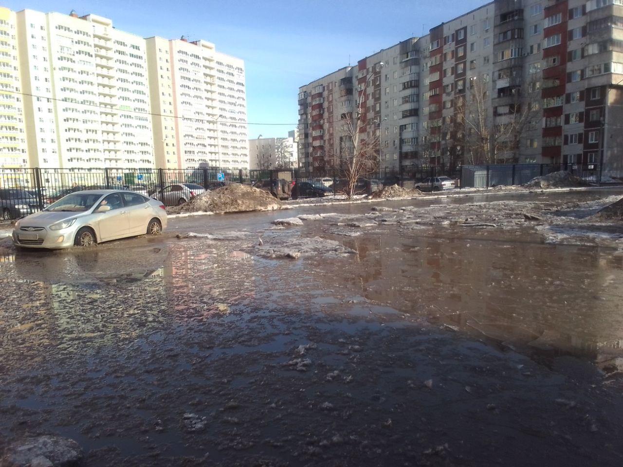 В Перми затопило дорогу рядом с новым домом ПЗСП