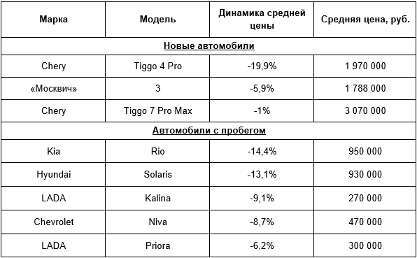 На вторичном рынке цены на авто тоже снизились. В частности, наиболее выгодной по сравнению с предыдущим годом оказалась покупка Kia Rio: он подешевел на 14,4%. Доступнее стали Hyundai Solaris (-13,1%) и LADA Kalina (-9,1%). Снизилась цена и на автомобили Chevrolet Niva (-8,7%) и LADA Priora (-6,2%).