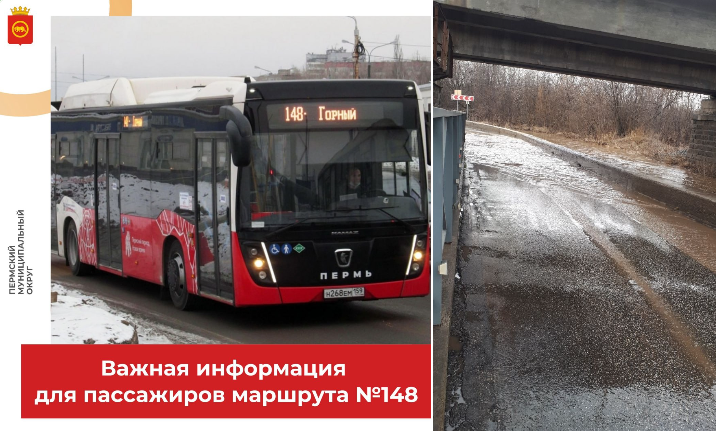 В связи с паводковой ситуацией местные власти уведомили население о временном изменении схемы движения автобусного маршрута №148 «п. Горный — Пермь». Теперь автобусы будут курсировать через Фролы.