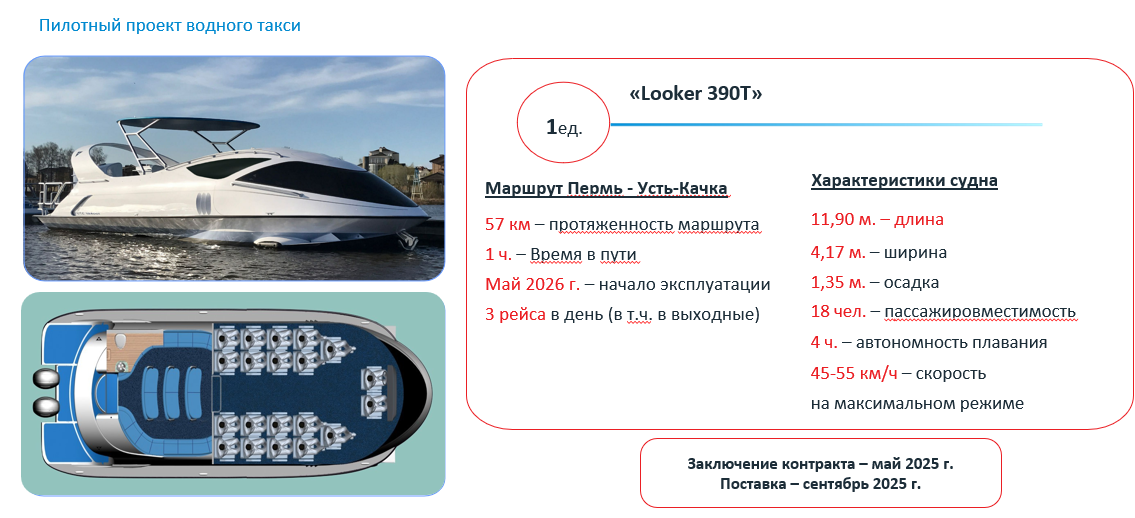 На заседании правительства Пермского края глава Минтранса региона Сергей Вешняков рассказал, что в мае этого года власти планируют заключить контракт на покупку первого собственного судна Looker 390T.