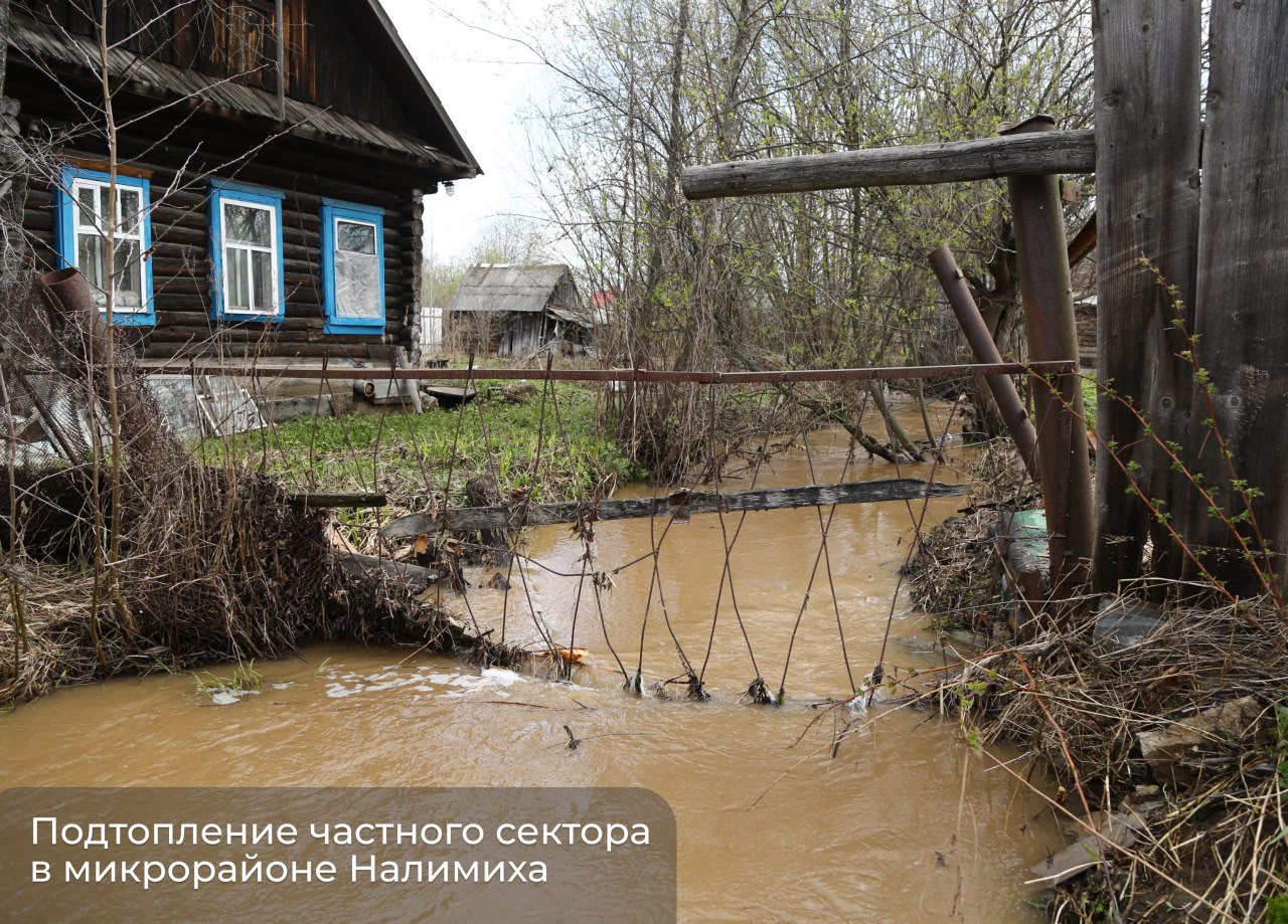 Во вторник, 6 мая, в соцсетях появилась информация о подтоплении микрорайона Налимиха в Кировском районе Перми. По словам очевидцев, река Заборная вышла из берегов и затопила территорию. На кадрах видно, что придомовые участки домов залило водой, а дорога, ведущая к микрорайону, разрушена. В результате на проезжей части образовался тупик, а жители оказались отрезаны от города.