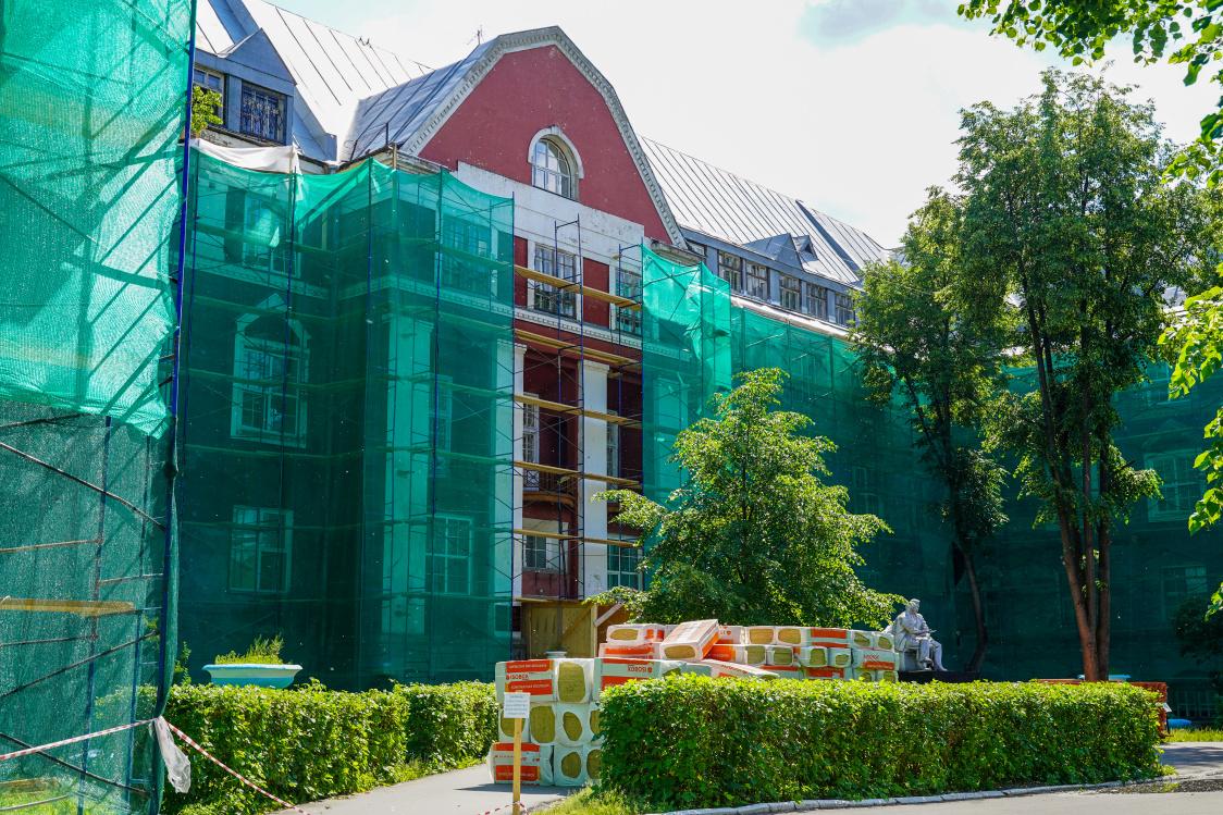 Начатые в июне 2024 года реставрационные работы в корпусах № 2 (ул. Генкеля, 7) и № 4 (ул. Генкеля, 7а) затянулись. Оба строения имеют статус объектов культурного наследия, что обусловило выступление краевой инспекции по охране ОКН в качестве заказчика. Из регионального бюджета на ремонт и адаптацию указанных корпусов к современным требованиям было выделено свыше 265 млн руб.