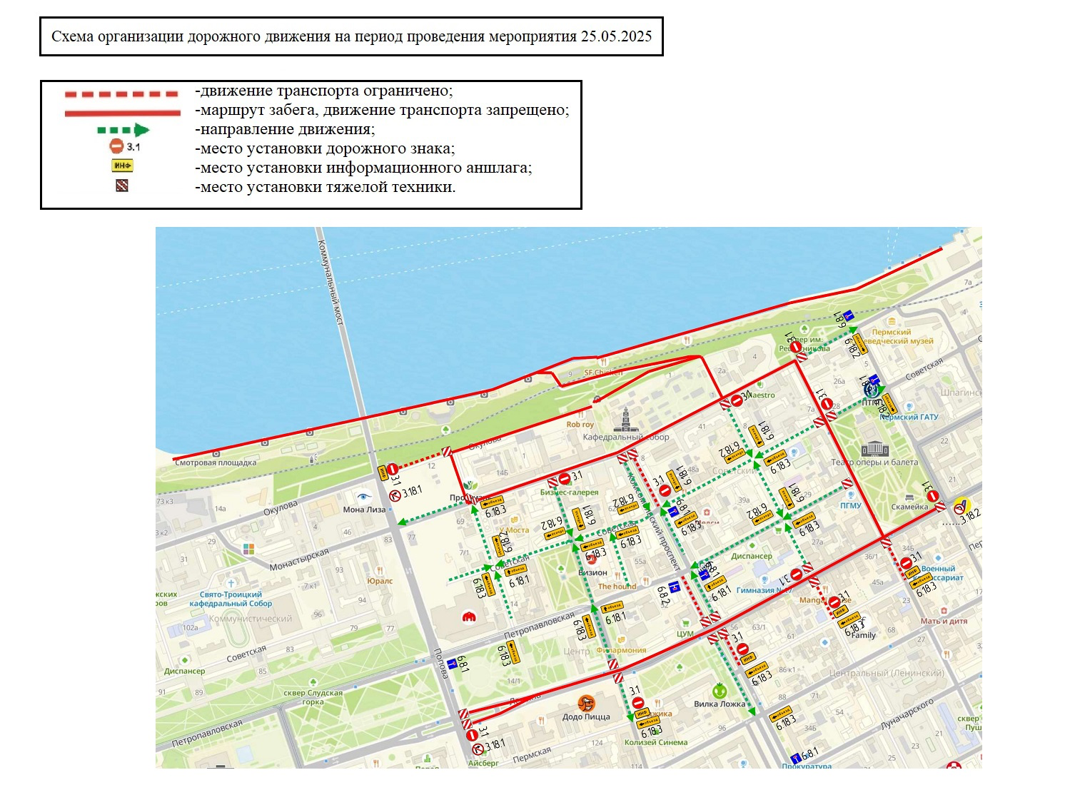 Организаторы мероприятия обращаются к жителям города с просьбой проявить понимание в связи с временными неудобствами, заранее продумать свои маршруты и проинформировать родных и близких, проживающих в центре Перми. Во избежание эвакуации транспортных средств рекомендуется заранее переставить их за пределы зоны перекрытия.