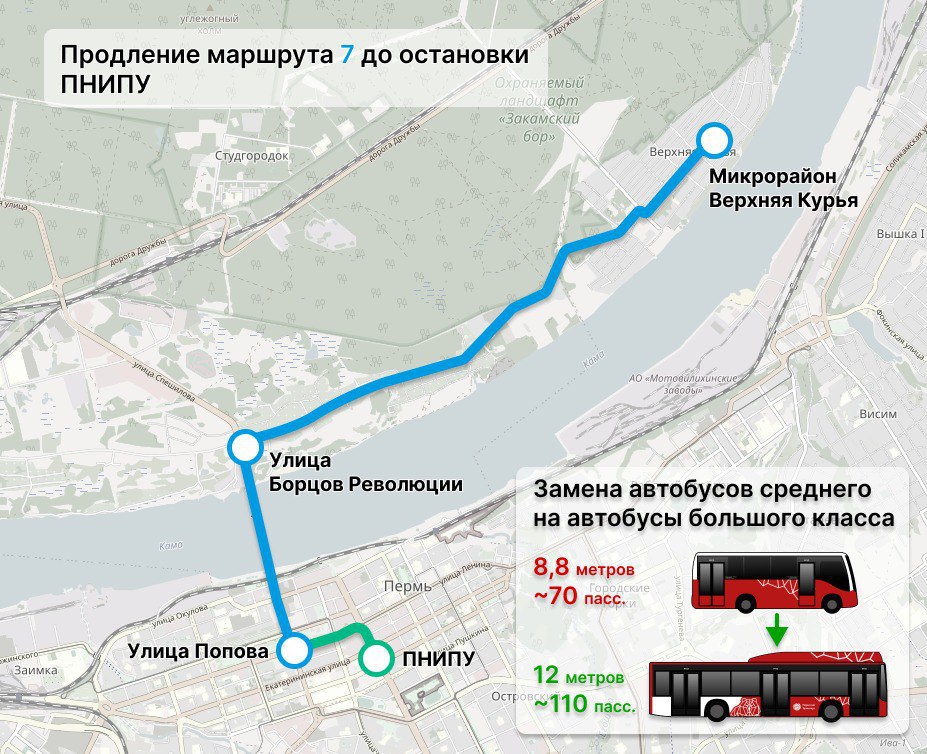 Автобусы маршрута №7 будут заменены на транспорт большего класса, а сам маршрут будет продлён до остановки «ПНИПУ».