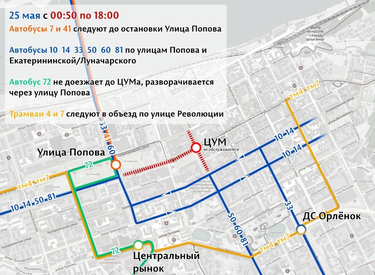 В Перми 25 мая изменятся маршруты движения общественного транспорта