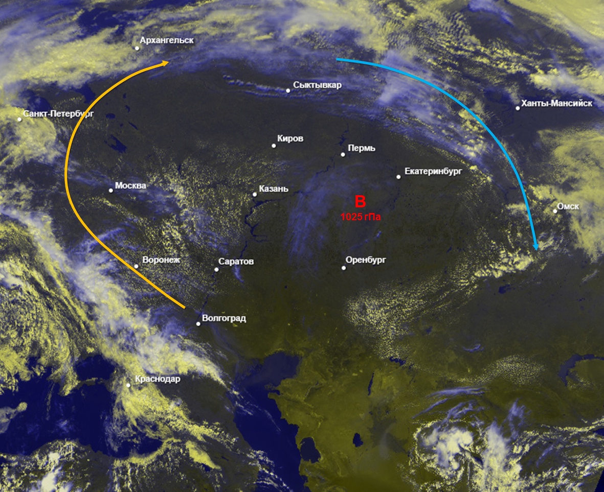 Специалисты отметили, что антициклону нужны температурные контрасты: между западной и восточной частью должна быть температурная разница. Без них антициклон заполняется тёплым воздухом и начинает разрушаться.
