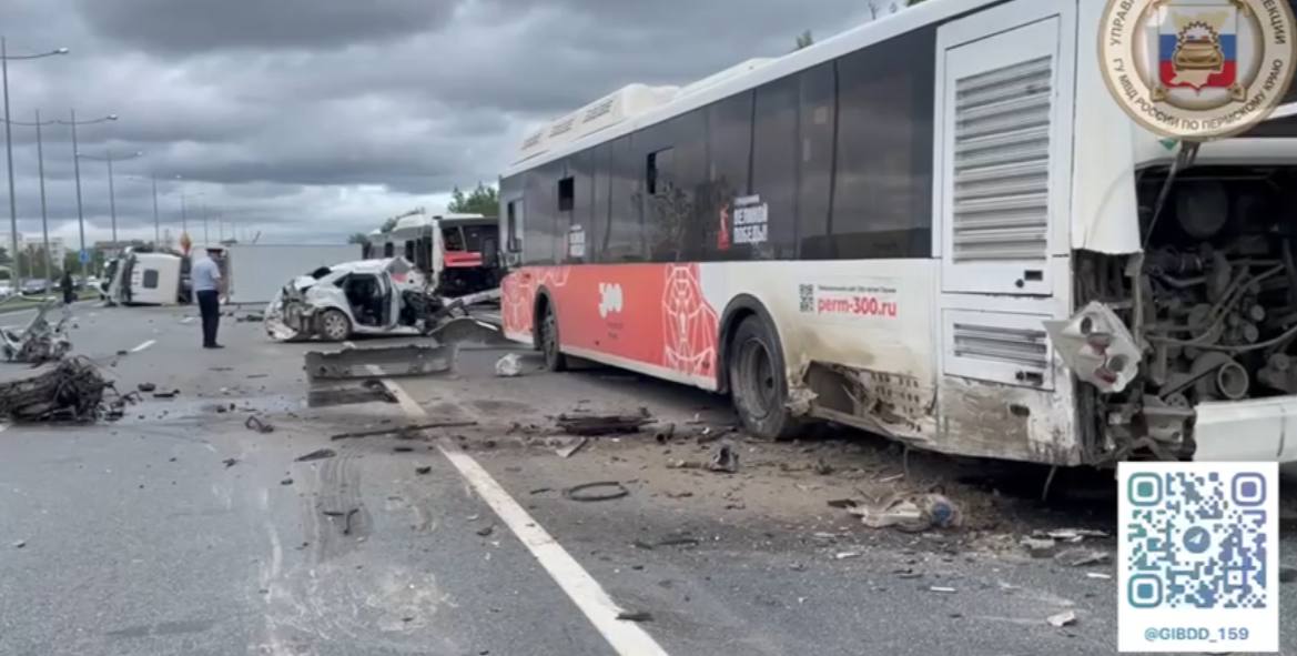 По ш. Космонавтов со стороны д. Большое Савино в сторону Перми ехал автомобиль «Фольксваген». Водитель проехал Гамовский тракт и по неустановленной причине выехал на полосу для маршрутного транспорта. Там он наехал на стоящий автобус «Лиаз». Затем легковушку отбросило на двигавшийся в попутном направлении грузовой автомобиль «Хово». От удара последний опрокинулся на проезжую часть и стоящий на полосе для маршрутных транспортных средств автобус «Нефаз».