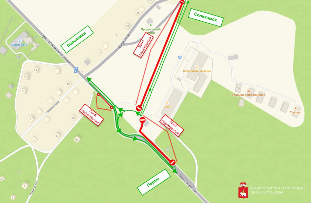 Также с 5 июня по 1 сентября текущего года изменится движение на автодороге Пермь–Березники на кольце в районе ул. Новожилова в Березниках. Здесь будет проходить реконструкция дороги с устройством кольцевой развязки.