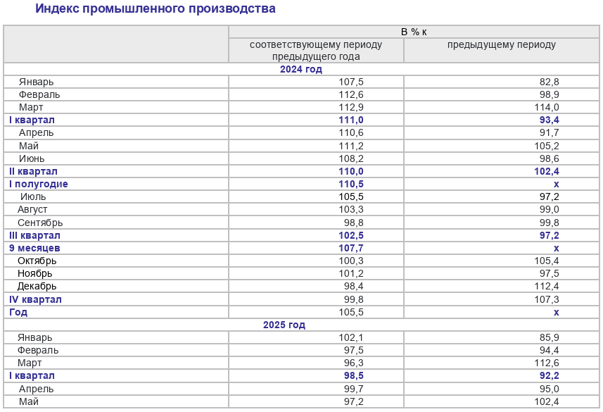 Индекс промышленного производства в Пермском крае в январе-мае 2025 года снизился на 1,5% по сравнению с аналогичным периодом прошлого года. В мае 2025-го показатель составил 98,5% относительно периода январь-май 2024 года, 97,2% — относительно мая 2024-го, но 102,4% — относительно апреля 2025-го. Об этом сообщает Пермьстат.