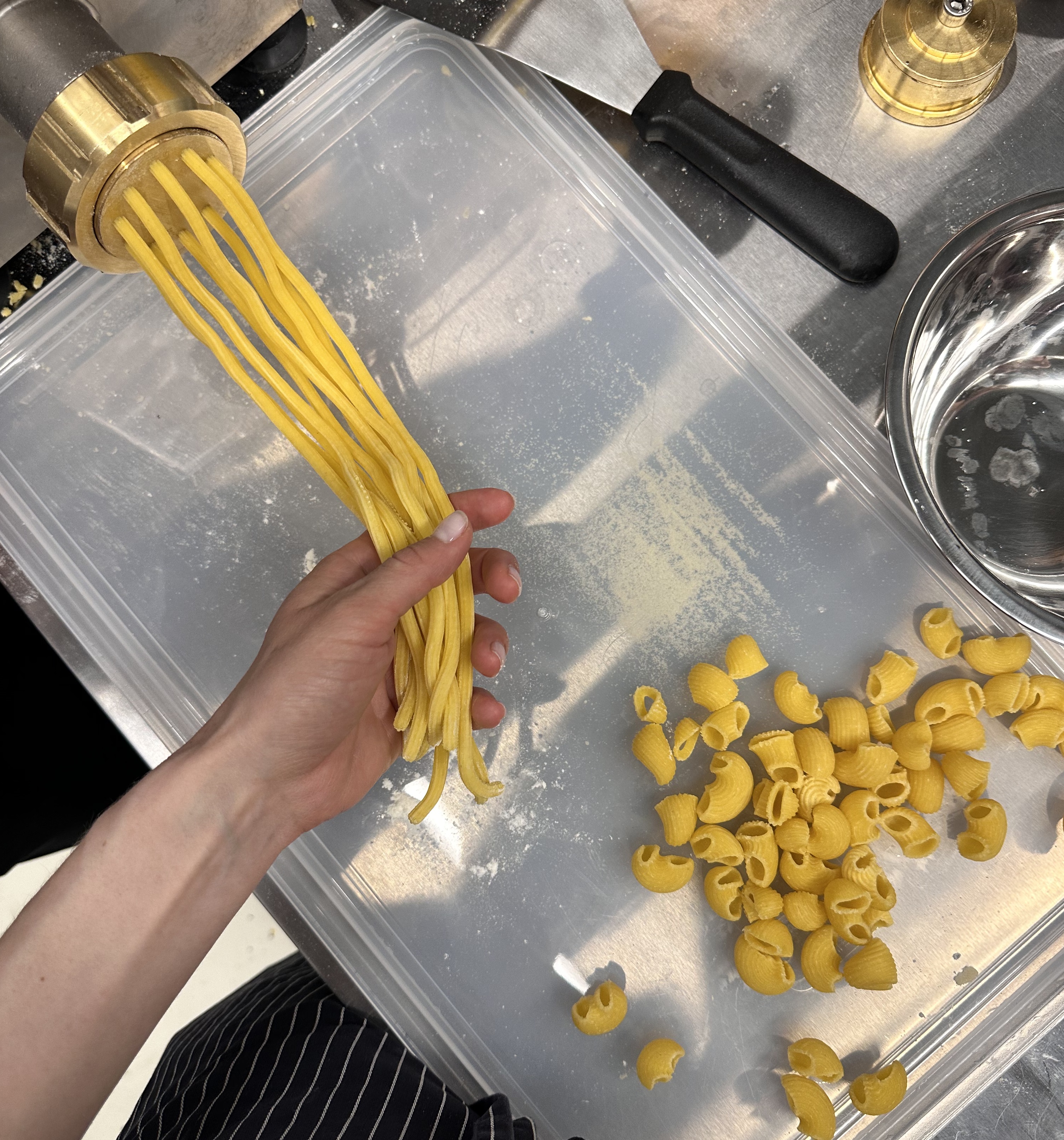 Меню проекта состоит из сочетаний и техник разных культур: хлеб собственного производства, паста ручной работы и десерты с французским характером, а также закуски, стартеры и горячие позиции.