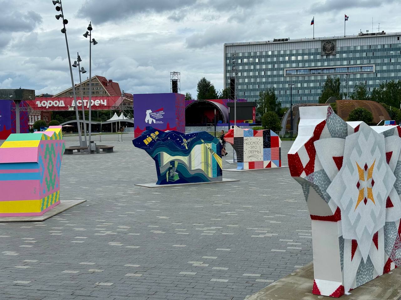 На пермской эспланаде перед зданием краевого заксобрания установили 20 арт-объектов в виде медведей с уникальными авторскими изображениями от 20 команд художников. Проект Музея современного искусства ПЕРММ — «Красим» вошёл в программу летнего фестиваля «Город встреч».
