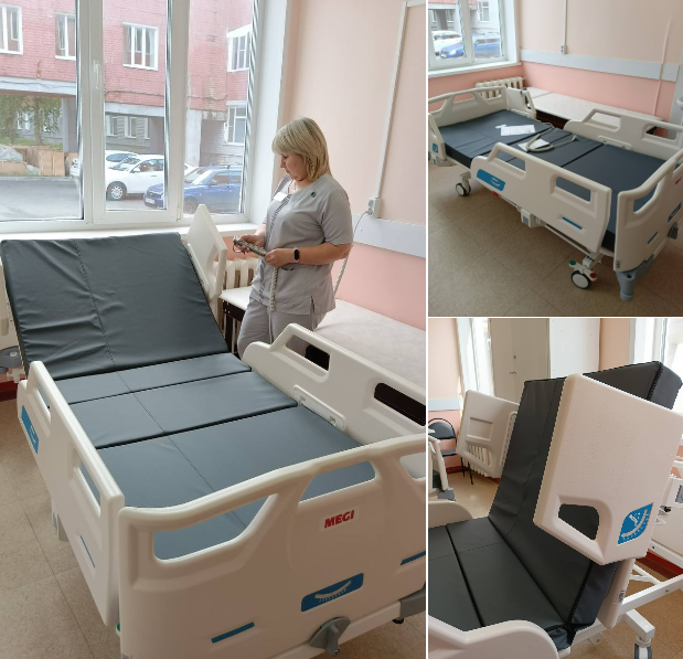 Каждая кровать укомплектована противопролежневым матрасом и съёмными бортиками безопасности. Конструкция способна выдерживать вес до 260 кг и идеально подходит для пациентов с ограниченной подвижностью, нарушениями двигательных функций и риском возникновения пролежней. С помощью пульта управления можно легко менять положение тела ребенка, регулируя высоту ножной и головной частей, а также общую высоту ложа и угол наклона кровати.