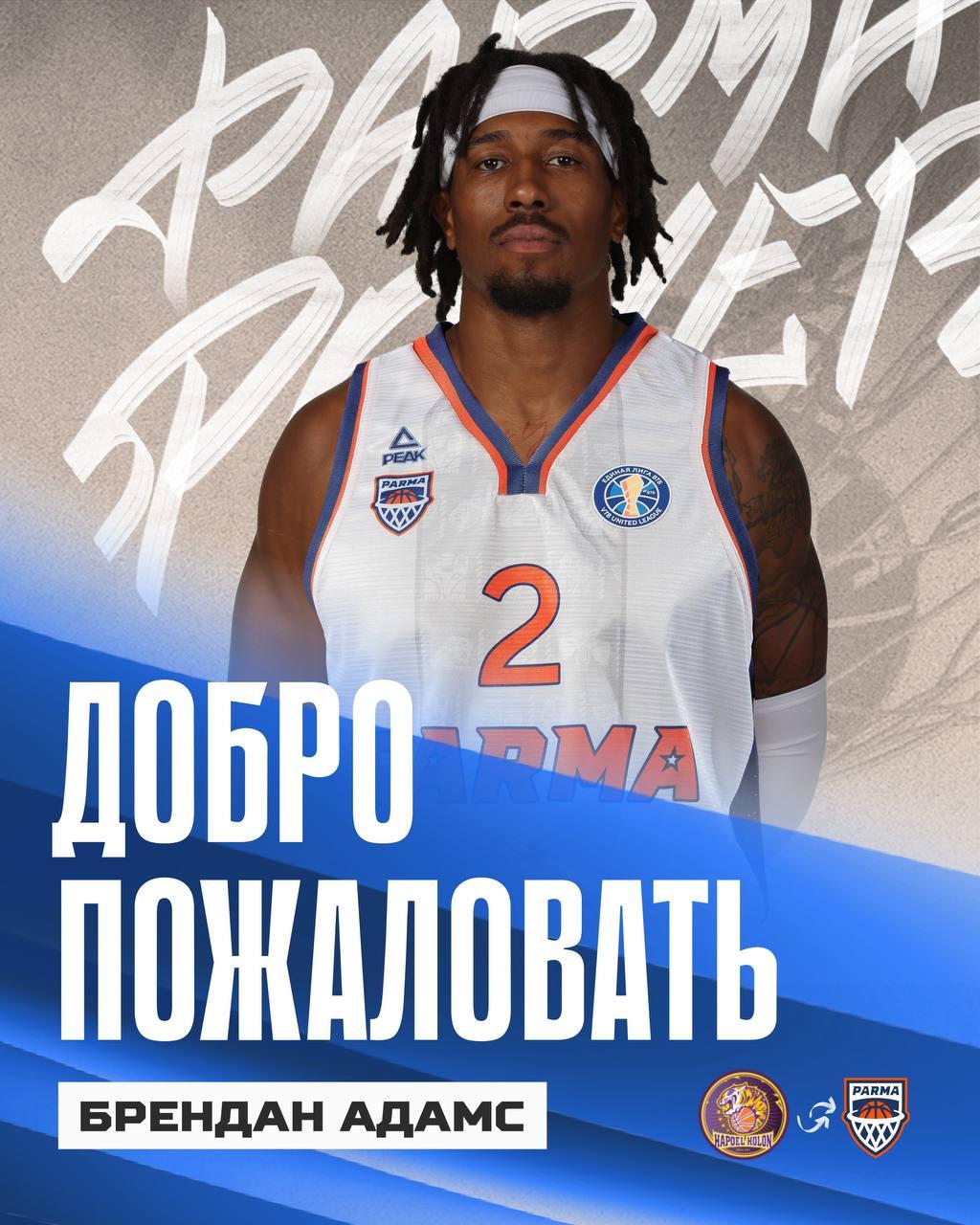 В ряды баскетбольного клуба «Парма» влился новый игрок – американский плеймейкер Брендан Адамс (25 лет, рост 193 см). Соглашение между сторонами рассчитано на сезон.