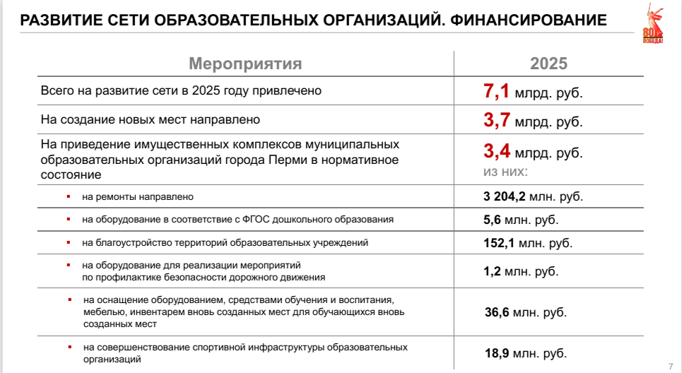 На развитие сети образовательных организаций в этом году власти выделили 7,1 млрд руб. На какие цели направлены выделенные средства — в данных таблицы.