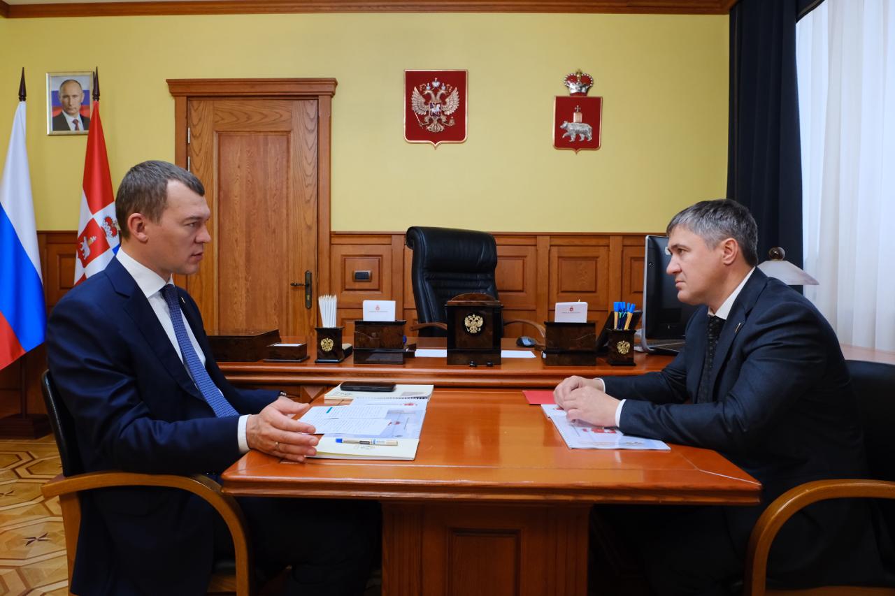 Губернатор Пермского края Дмитрий Махонин встретился с министром спорта РФ, главой Олимпийского комитета России Михаилом Дягтерёвым. Глава федерального ведомства прибыл в столицу Прикамья с рабочим визитом 29 августа.