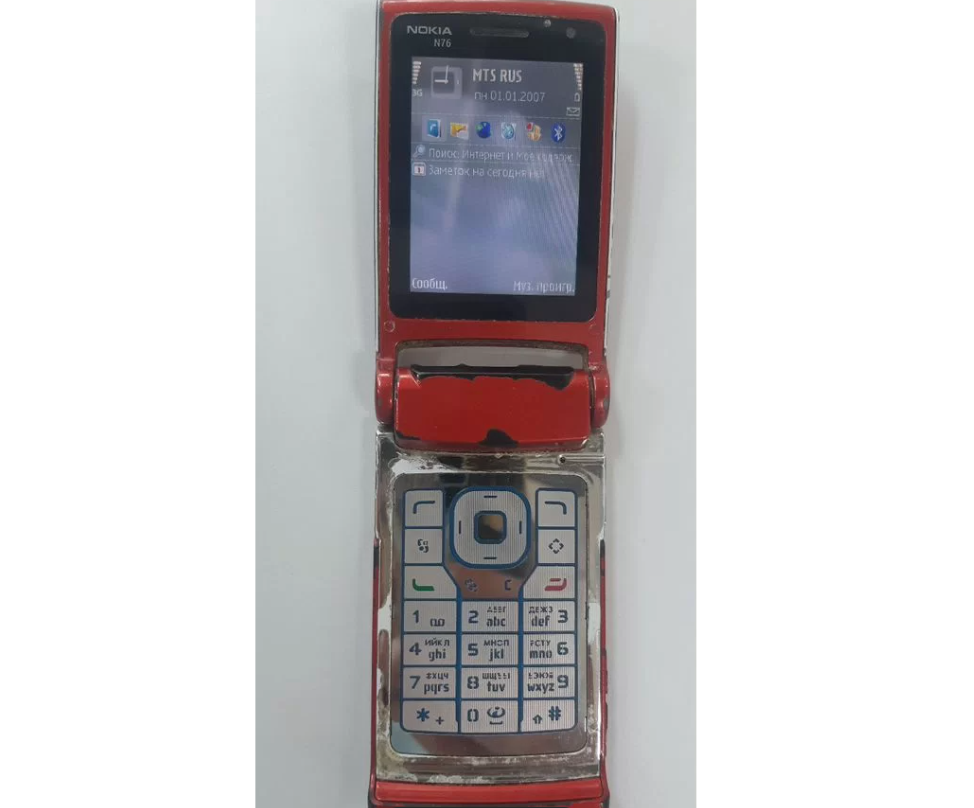 Далее в подборке экспертов представлен телефон Nokia N76 — типичный представитель эпохи тонких слайдеров середины 2000-х. У этого аппарата компактный корпус, а сам он эффектного красного цвета. Этот аппарат сочетает классический дизайн Nokia и основные мультимедийные возможности — камеру и музыкальный плеер. Экземпляр продаётся в хорошем состоянии, хотя на корпусе и экране есть незначительные царапины. Однако телефон работоспособен.