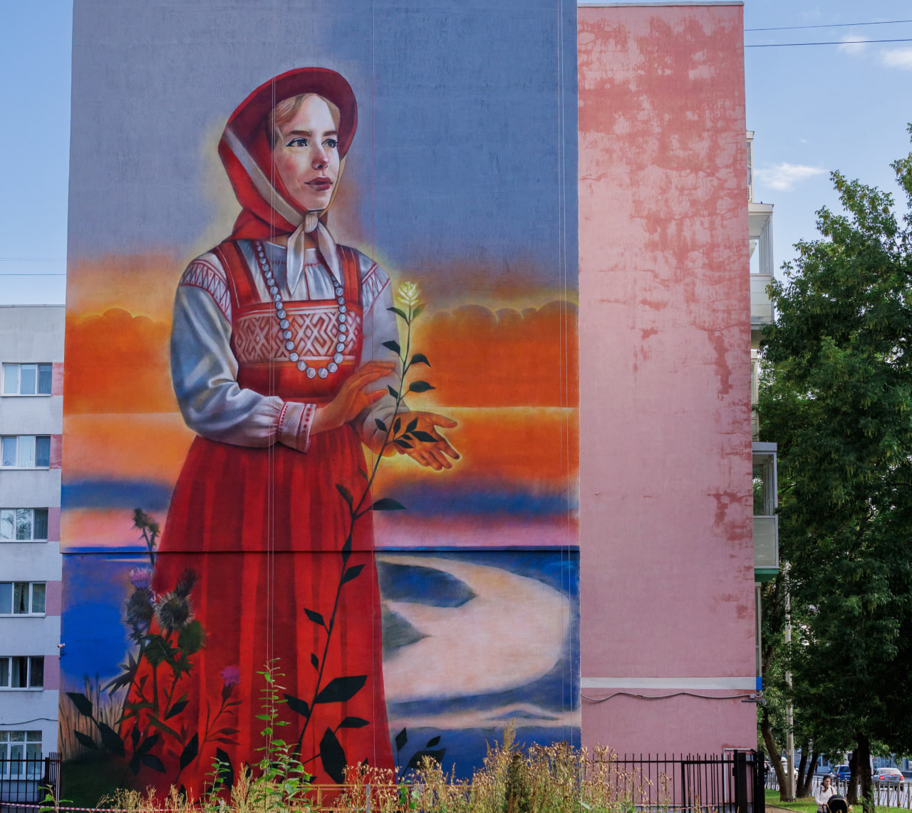 Художник Дмитрий «Чапай» Егоров в соавторстве с Ксенией Кокель (Чебоксары) завершил мурал на здании по ул. КИМ, 74а. На фасаде появился портрет девушки в традиционном коми-пермяцком костюме. По замыслу художника, этот образ должен напомнить зрителям о связи человека с природой и древних традициях коми-пермяцкого народа. Героиней мурала стала солистка пермского ансамбля «Воскресение» Полина Калинина.