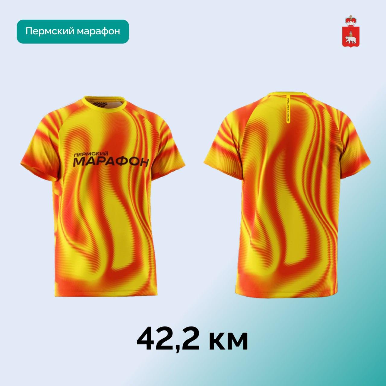 Бегуны полумарафона наденут футболки цвета Пермского заката, а участники марафона — футболки огненного оттенка.