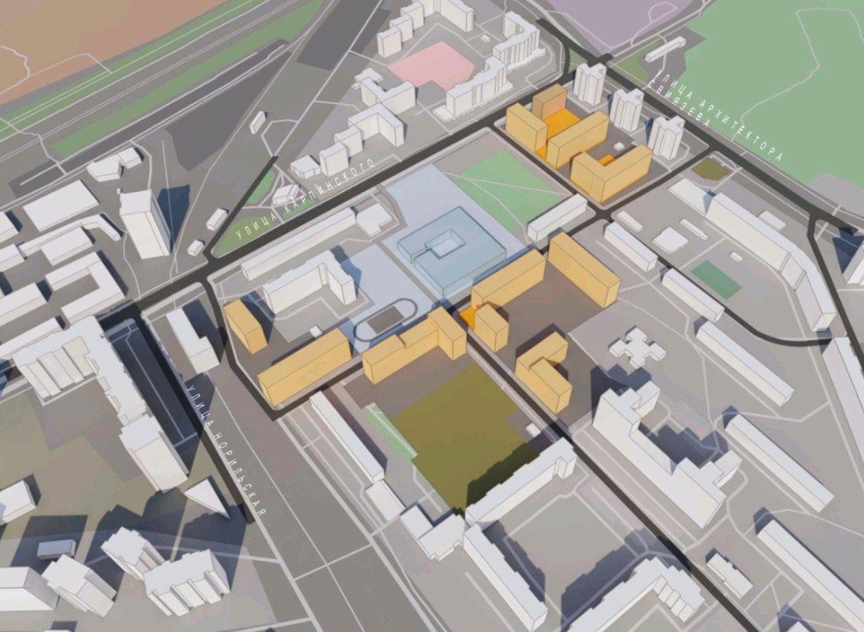 В публикации также представлены концепции развития территорий. На схемах показаны размещение планируемой жилой застройки, территории будущего детского сада, школы, а также стилобата с коммерческими помещениями и паркингом.