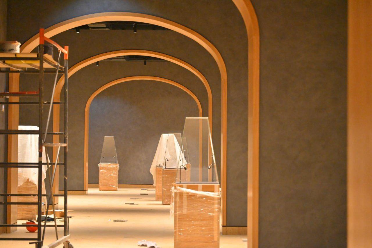 Как сообщили в Министерстве строительства Прикамья, после завершения основных строительных работ в новом здании Пермской художественной галереи идёт установка оборудования для экспозиций и хранения фондов. Сотрудники наполняют залы музейной мебелью, в частности, монтируют подставки, стеллажи, витрины из стекла, полки для экспонатов, световое оборудование и пр.