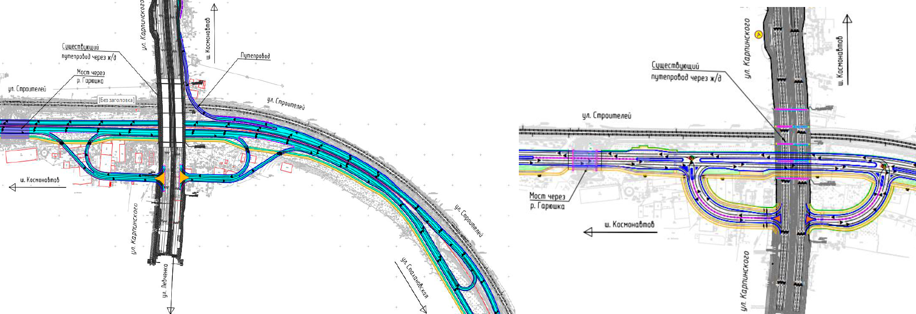 В рамках первой очереди ведутся работы на участке от площади Гайдара до ш. Космонавтов, в третью очередь приступят к работам на участке между улицами Крисанова и Стахановской, а затем будет построен левоповоротный съезд с ул. Строителей в створе ул. Стахановской.