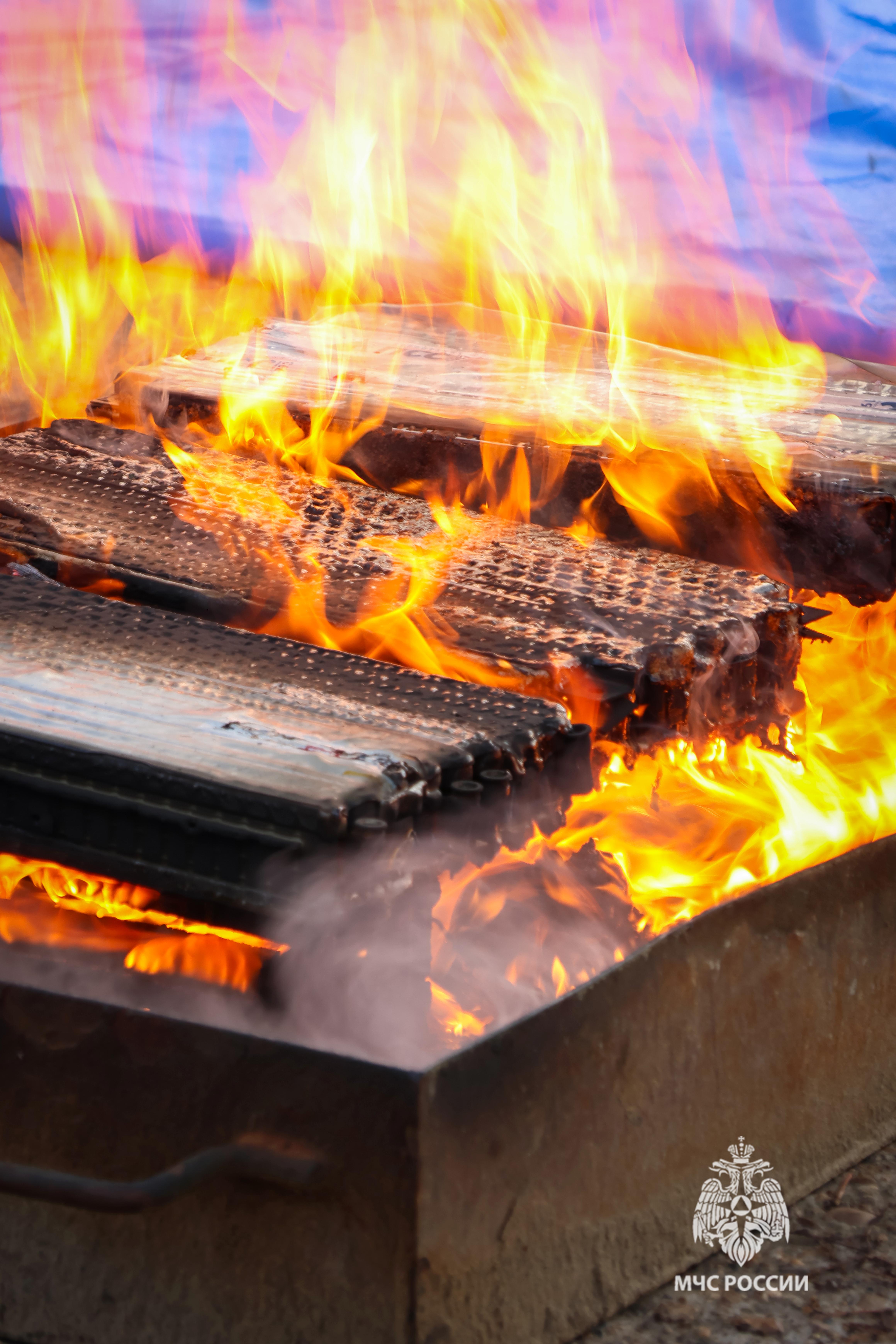 Наиболее эффективным способом оказалось интенсивное тушение и охлаждение модуля водой из пожарной автоцистерны. Мощная струя воды привела к мгновенному снижению температуры и прекращению цепной реакции горения ячеек.