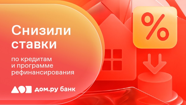 Дом.ру банк вновь объявил о снижении ставок по кредитным продуктам